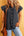 Black Button Front Ruffled Flutter Frayed Denim Top
