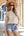 Light Blue Geometric Printed Flutter Sleeve Mock Neck Shirred Blouse
