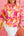 Red Floral Short Sleeve Slit Neck Plus Size Blouse