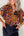 Orange Leopard Printed Draped Short Sleeve Slit V Neck Blouse