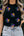Black Chenille Mardi Gras Pattern Patched Crew Neck Tee