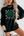 Green Leopard Plaid Patchwork Long Sleeve Rhinestone Lucky Clover Graphic Top