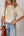 Beige Hollowed Pattern Knit Short Puff Sleeve Sweater