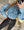 Denim Turn down Collar Lantern Sleeve Beaded Front Button Shirred Blouse Casual Top