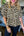 Multicolour Floral Print Striped Yoke Frilled V Neck Puff Short Sleeve Blouse
