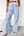 Sky Blue Stripe Wide Leg Buttoned Lace up Elastic High Waist Pants