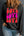 Pink Stripe Patchwork Sequin Heart Pattern Long Sleeve Collared Split Top