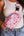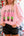 Pink Floral Patch Color Block Striped Sleeve Textured Top