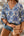 Blue Plus Size Ethnic Printed 3/4 Sleeve V Neck Loose Blouse