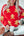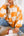Orange Floral Printed Bell Sleeve Mock Neck Scallop Trim Blouse