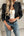 Black Checkered Print Side Slits O Neck Plus Size T Shirt