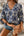 Blue Plus Size Ethnic Printed 3/4 Sleeve V Neck Loose Blouse