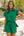Jungle Green Textured Bracelet Sleeve Collared Button Up Dual Tied Mini Dress