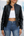 Black Leatherette Button Tab Stand Neck Zip Motor Jacket