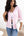 Bright Pink Corded Flower Bow Ribbed Trim Casual Sweater