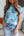 Grapefruit Orange Color Block Patchwork Collared V Neck Loose Top