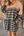 Black Plaid Waffle Knit Patchwork Collared V Neck Plus Size Mini Dress