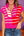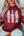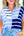 Red Stripe Lantern Sleeve V Neck Collared Drop Shoulder Sweater