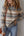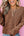 Brown Stripe Textured Frilly Trim Buttons Henley Long Sleeve Top