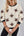 White Bow Knot Print Piping Trim Ruffled Crew Neck Blouse