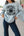 Medium Grey Sequin Happy Halloween Graphic Notched Neck Long Sleeve Loose Top