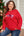 Red Stripe Textured Patched Drop Shoulder Buttoned Plus Size Sweatshirt