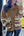 Brown Western Printed Ribbed Trim Collared Zip up Cardigan