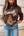 Rose Leopard Print Ruched V Neck 3/4 Sleeve Blouse