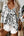Meadow Mist Green Contrast Printed Bubble Sleeve Henley Loose Top with Slits
