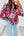 Red Floral Printed Balloon Sleeve Half Buttons Blouse