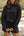 Black Waffle Knit Patchwork Buttoned Oversized Shacket