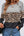 Gray Cheetah Textured Patchwork Buttoned Round Neck T Shirt