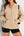 Beige Floral Patchwork Textured Knit Drawstring V Neck Blouse