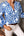 Sky Blue Vintage Geometric Printed Puff Sleeve Slit V Neck Shirt