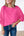Bright Pink Corded Turn-down V Neck Bubble Sleeve Babydoll Blouse