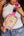 Orange Geometric Print Long Sleeve Keyhole Back Blouse