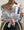 Newspaper Print Button Design Lantern Sleeve Shirt
