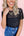 Black Bowknot Sheer Mesh Mock Neck Lettuce Trim Short Sleeve Top