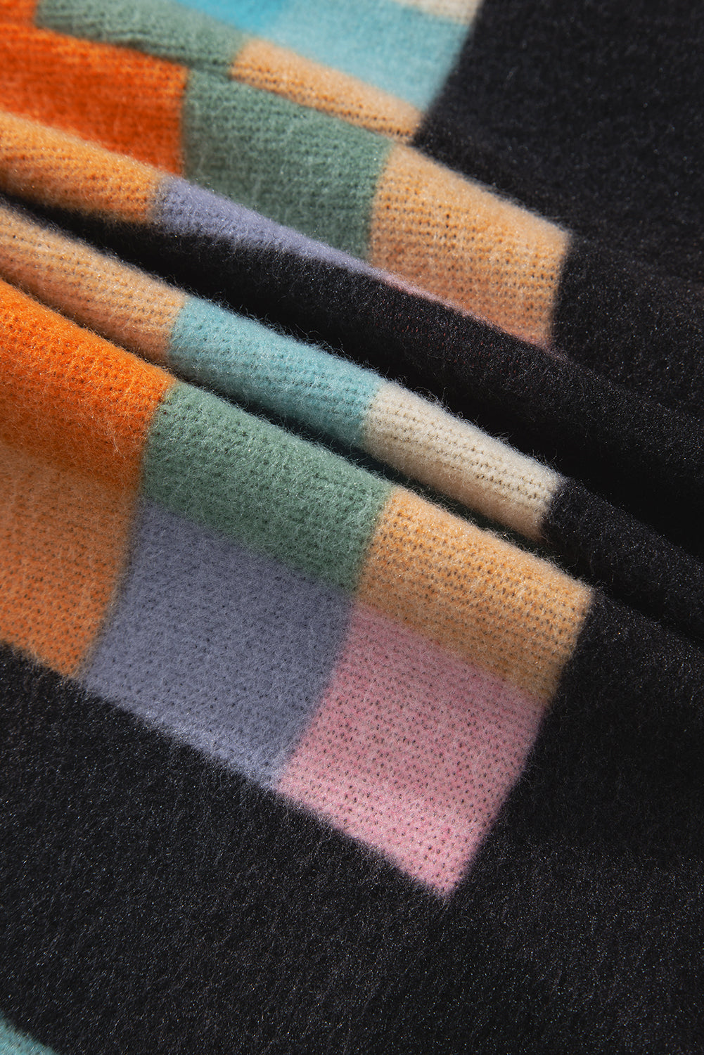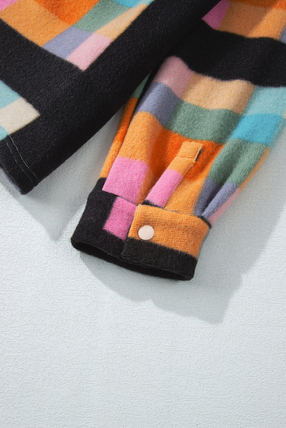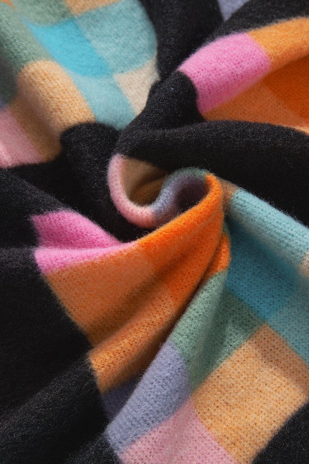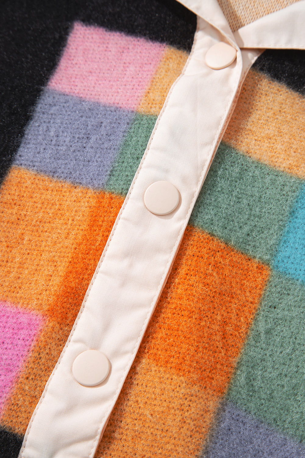 Black Plus Size Checkered Print Sherpa Henley Sweatshirt