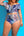Navy Blue Abstract Print Frilled Trim Spaghetti Straps Tankini Set