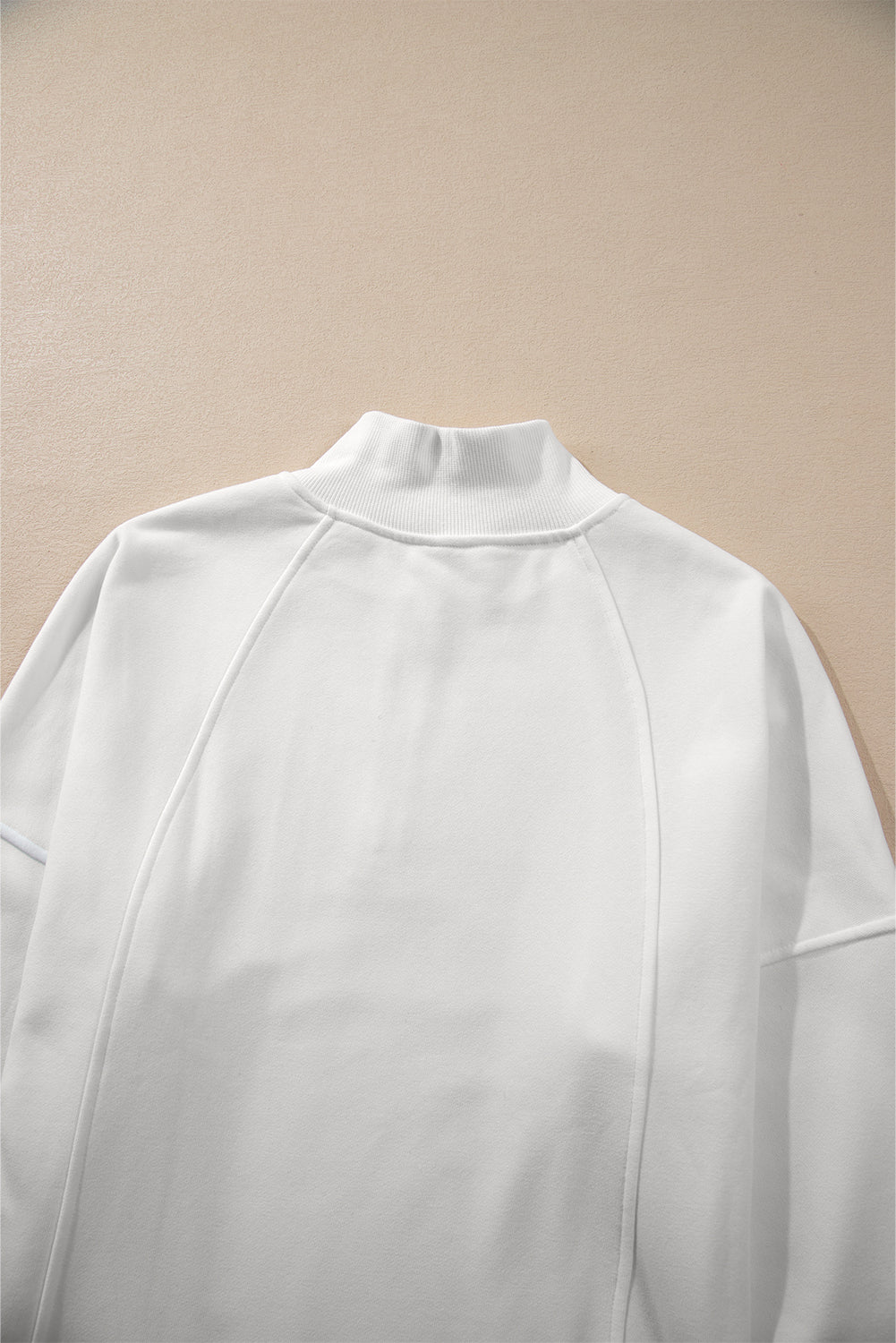 White Zipped Neck Pullover Drop Shoulder Sweatshirt