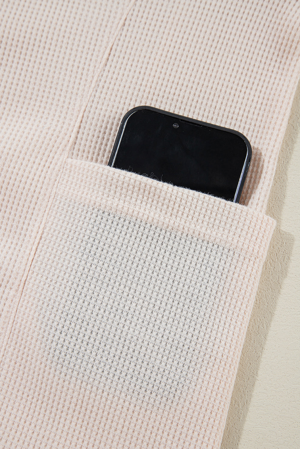 Jet Stream Waffle Long Sleeve Collar Half Button Loose Top