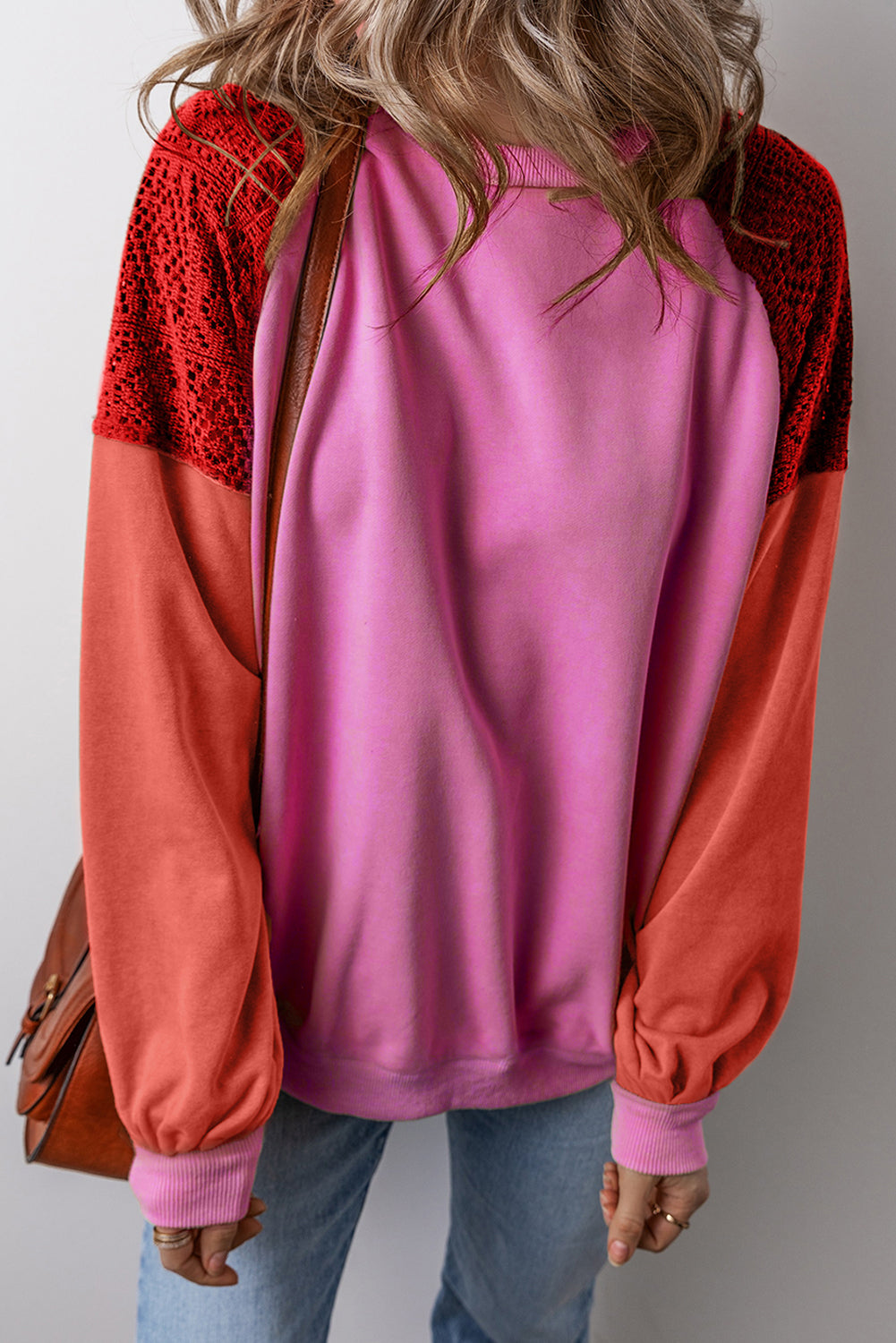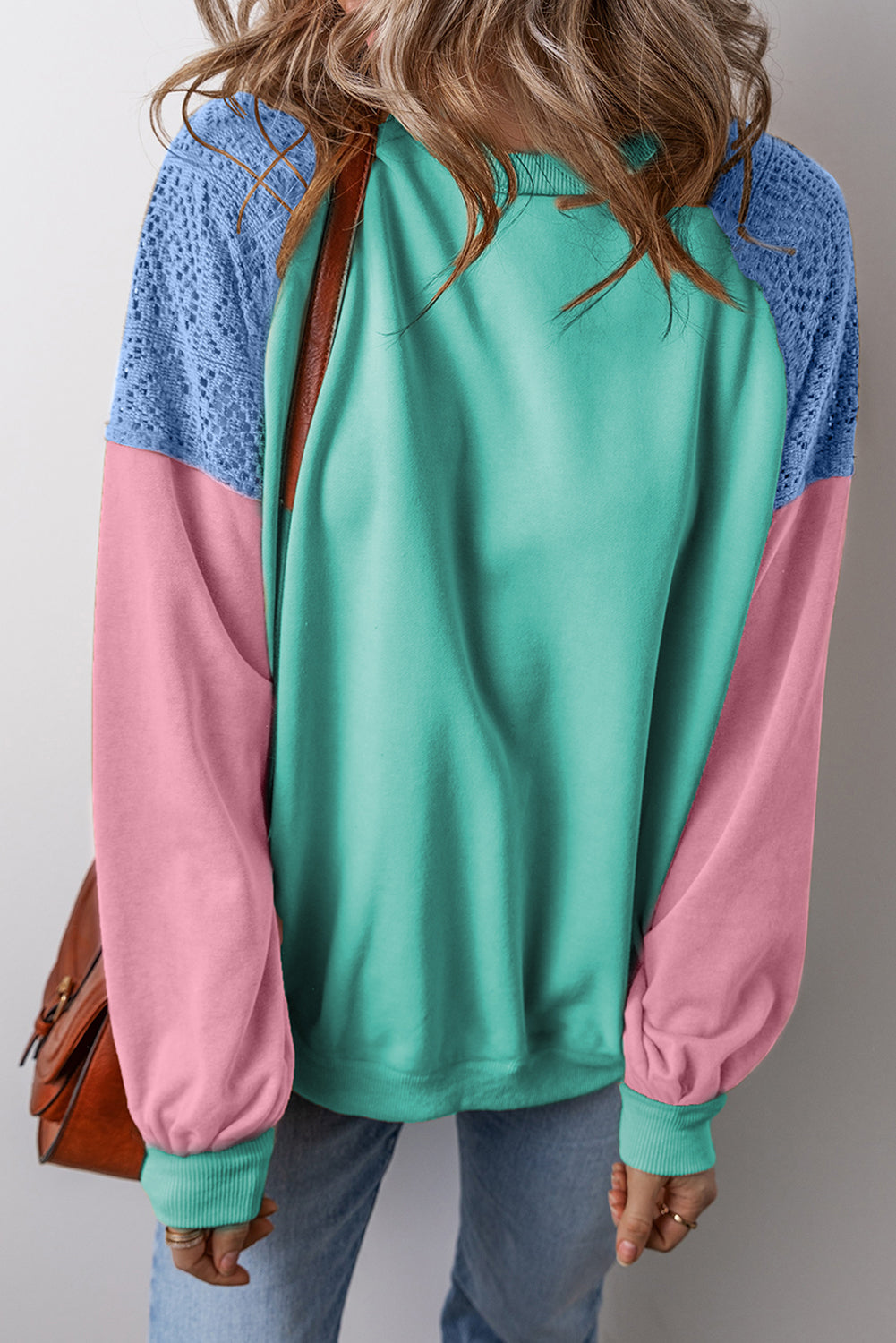 Khaki Lace Patchwork Colorblock Drop Shoulder Sweatshirt