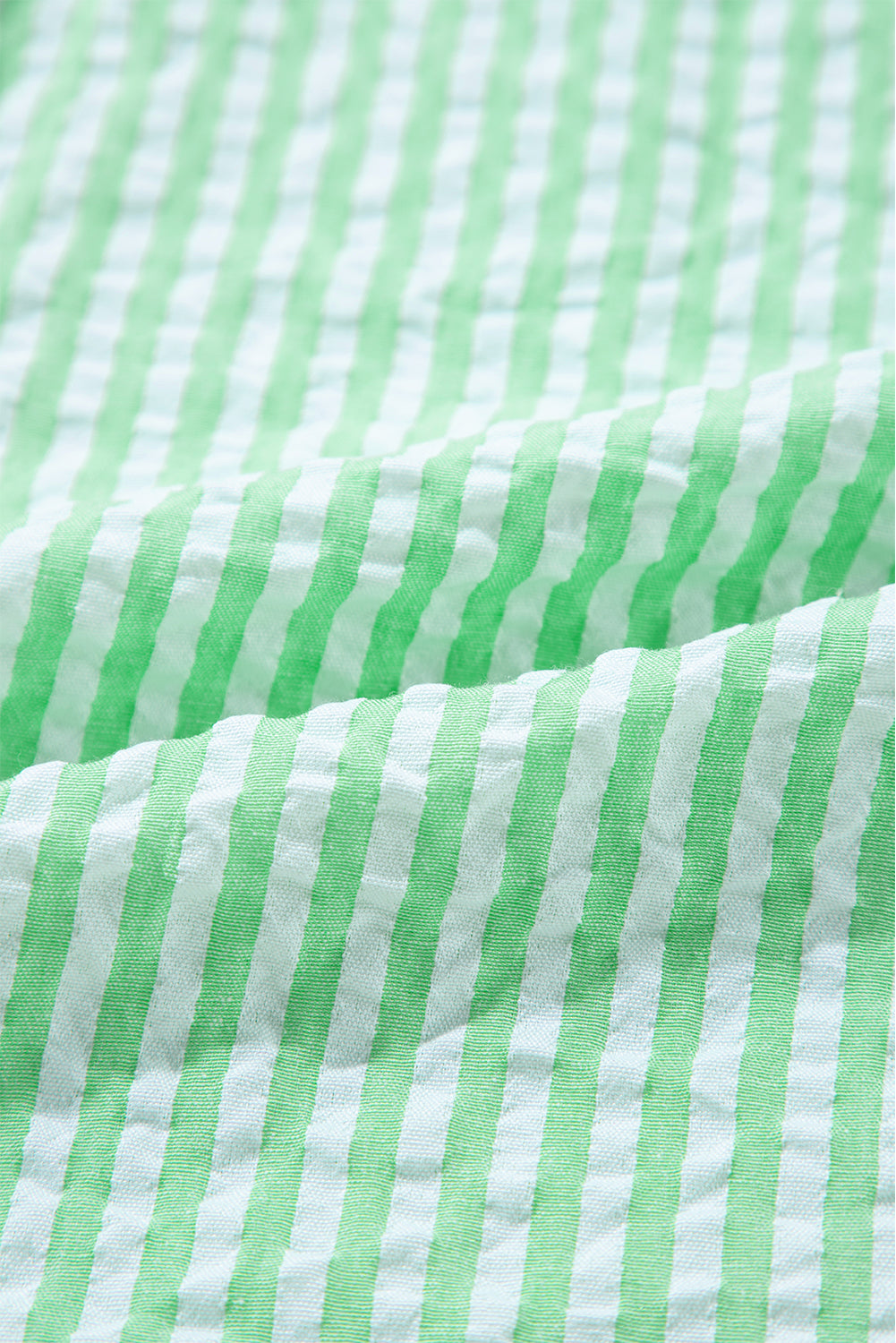 Pink Stripe Color Block Balloon Sleeve Buttoned Loose Fit Shirt