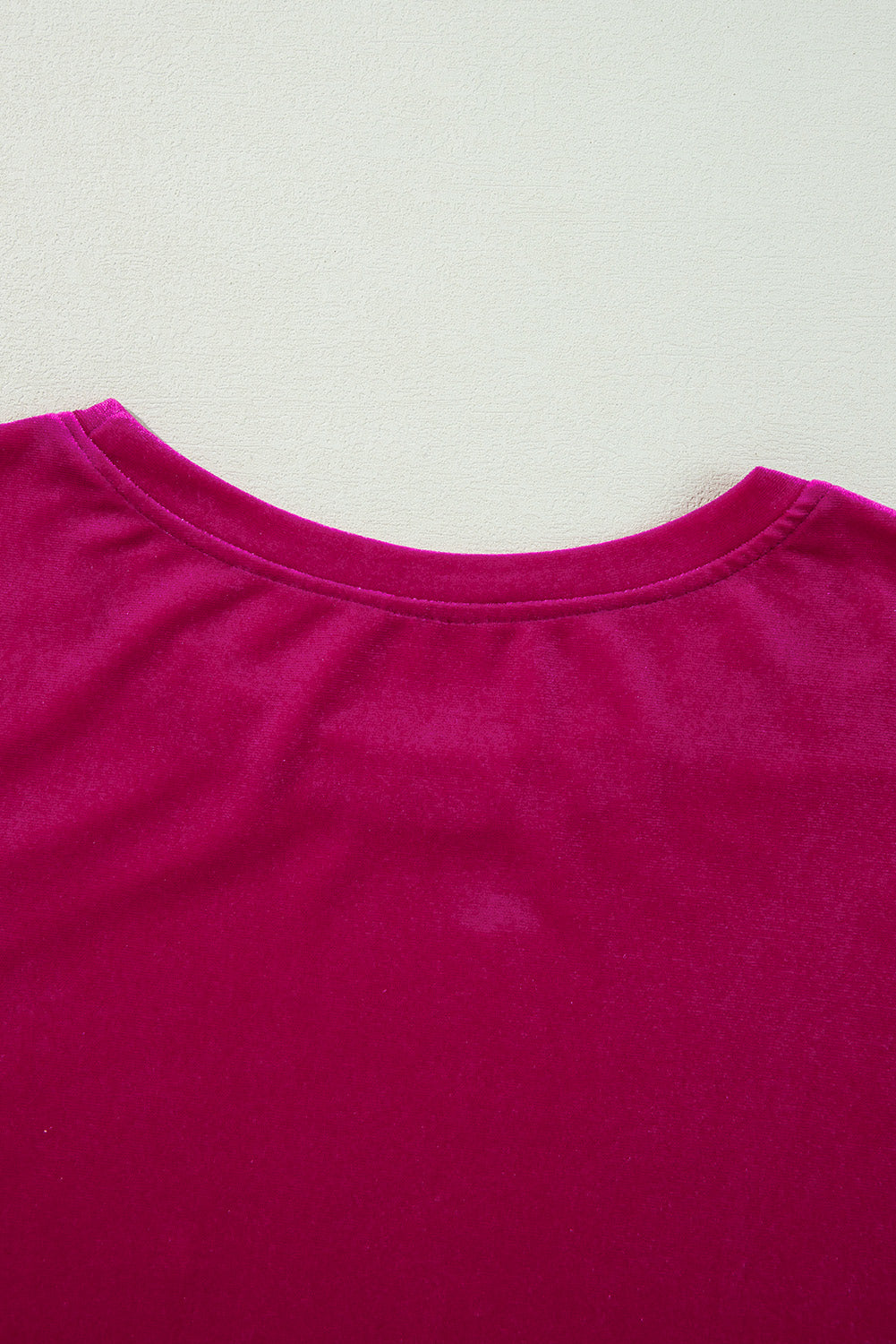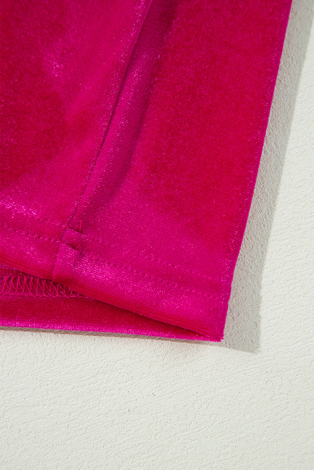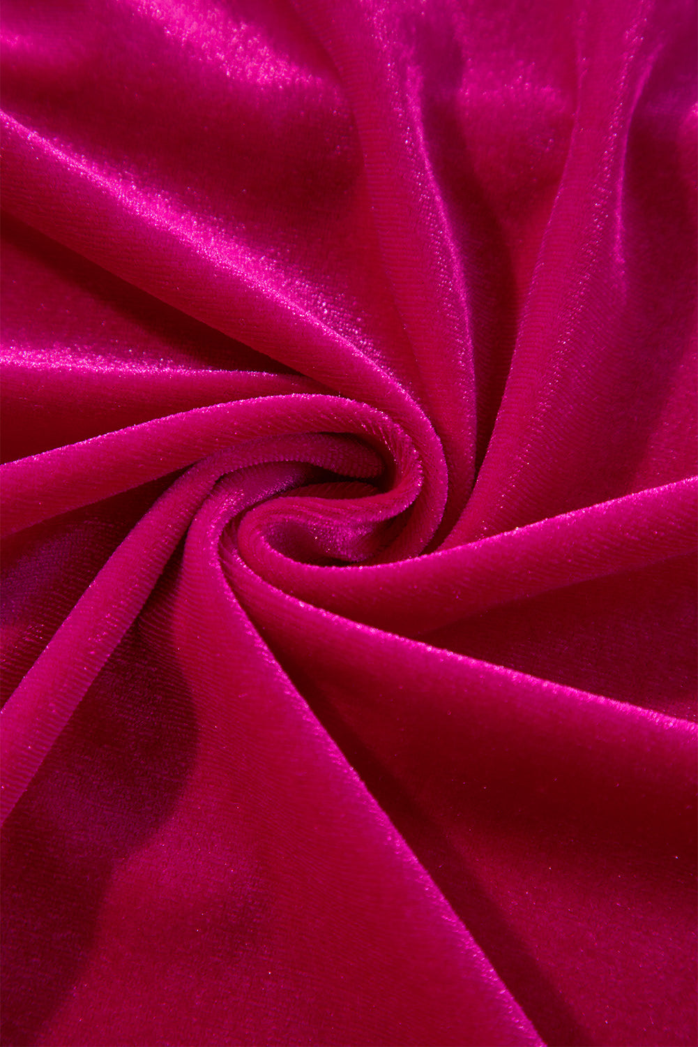 Rose Red Solid Velvet Ruffled Two Piece Pants Set