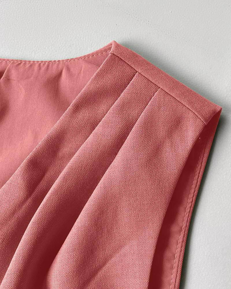 2 Pieces Summer Outfits V Neck Sleeveless Ruched Tank and Casual Pocket Design Shorts Set