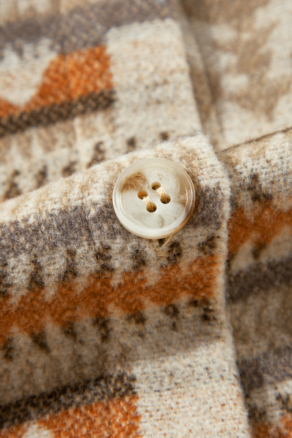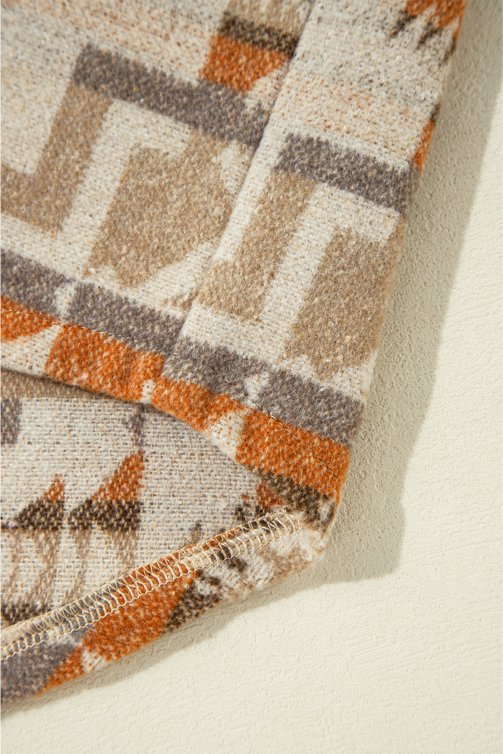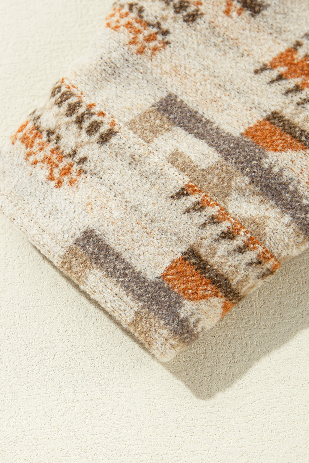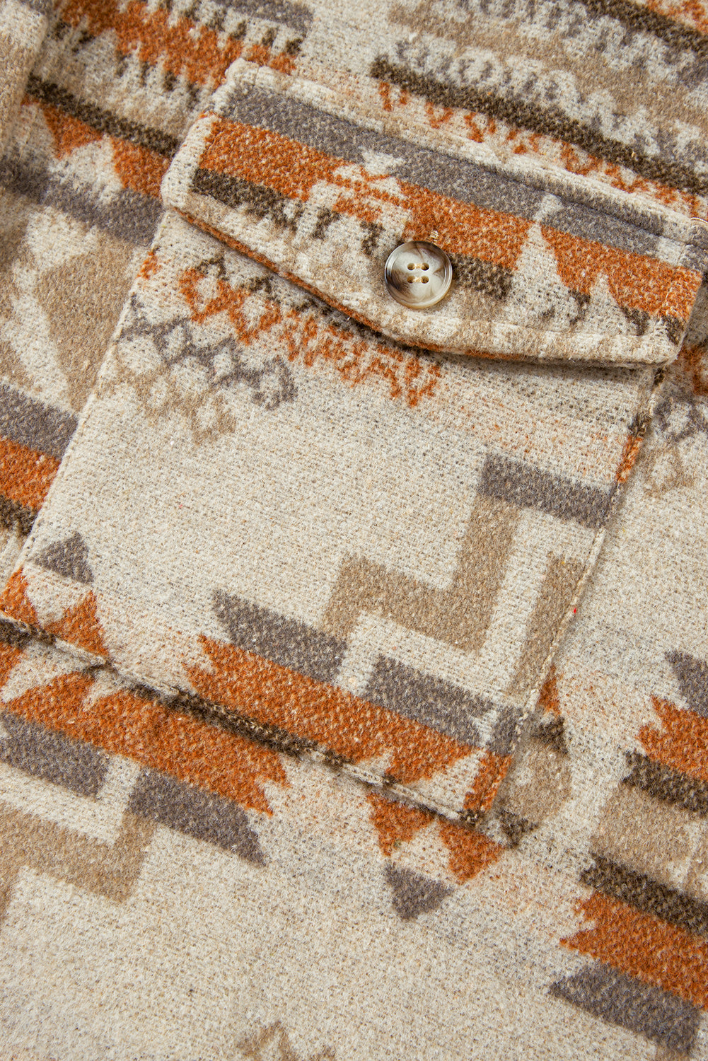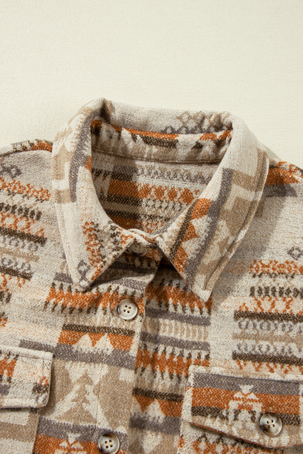 White Aztec Geometric Print Pockets Plus Size Jacket