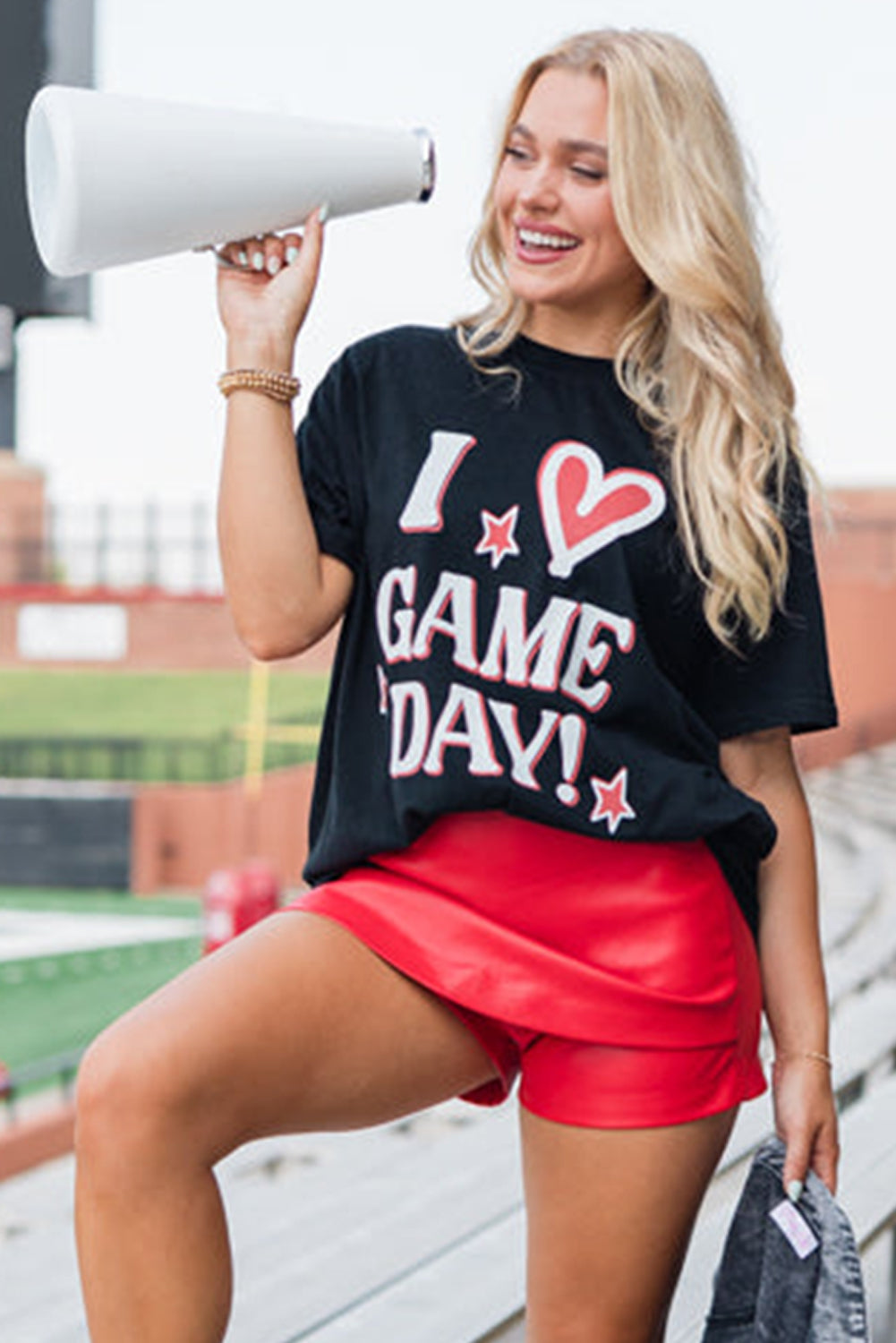 Black I Love GAME DAY Heart Printed Crewneck T Shirt