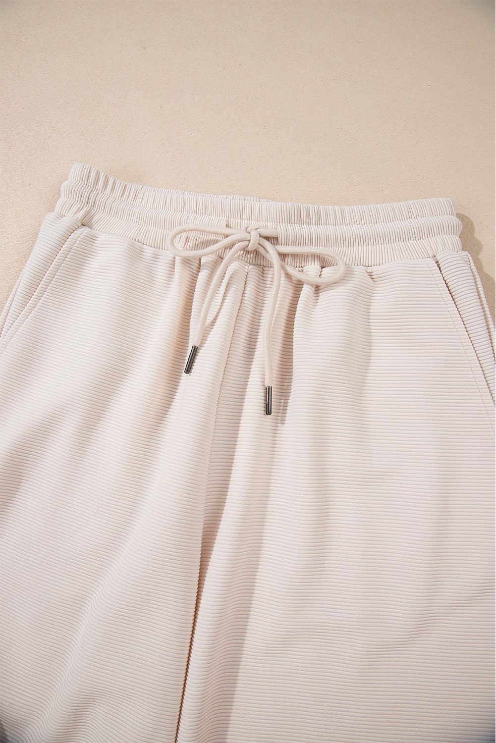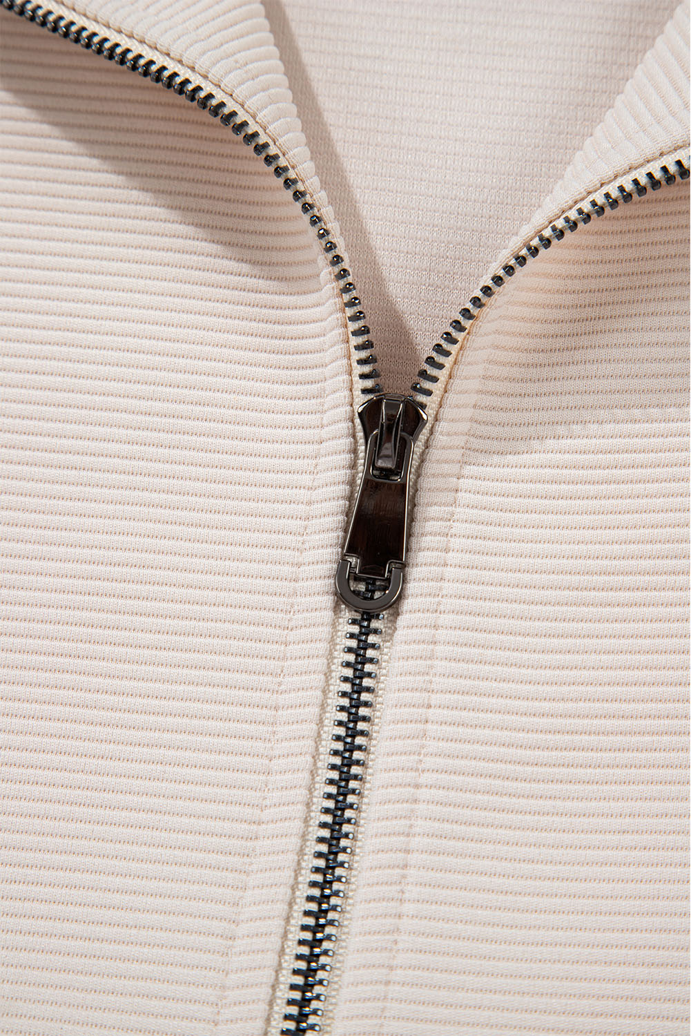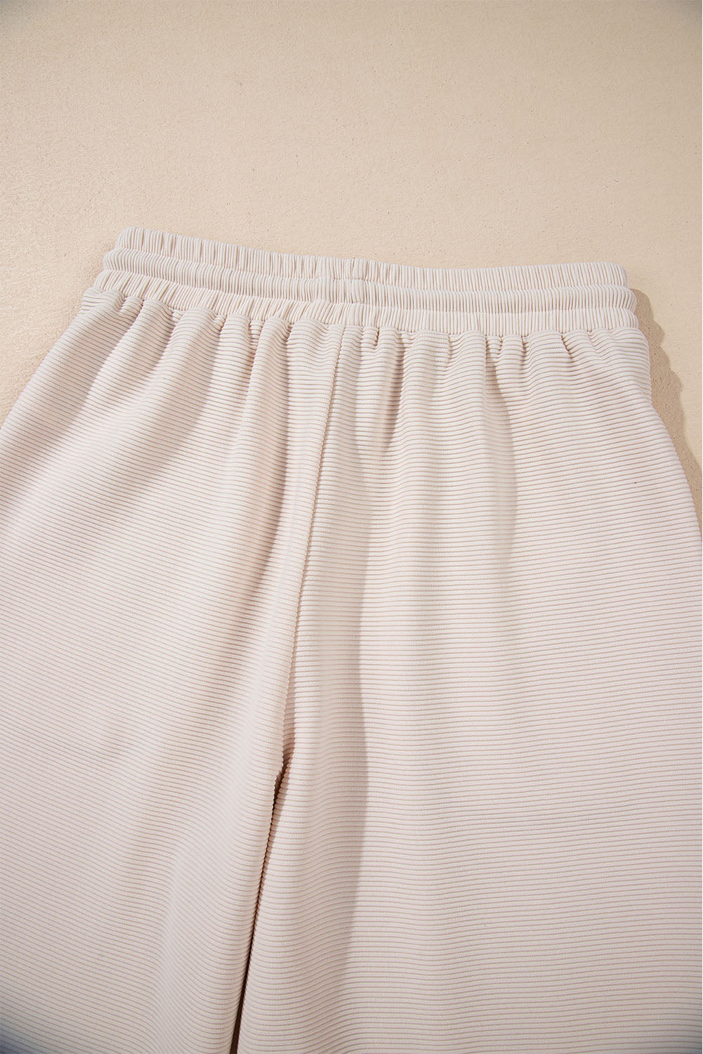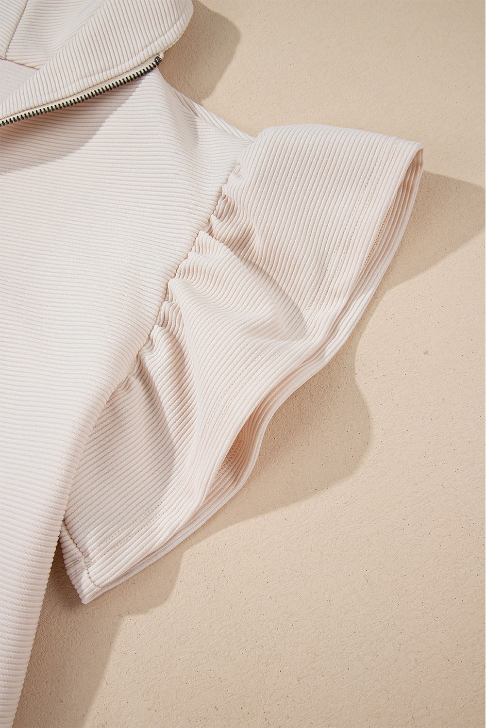 Apricot Textured Ruffled Sleeve Zipped Top and Wide Leg Pants Set