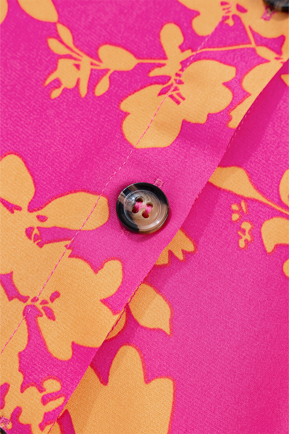 Pink Floral Print Drawstring Tunic Flowy Short Dress
